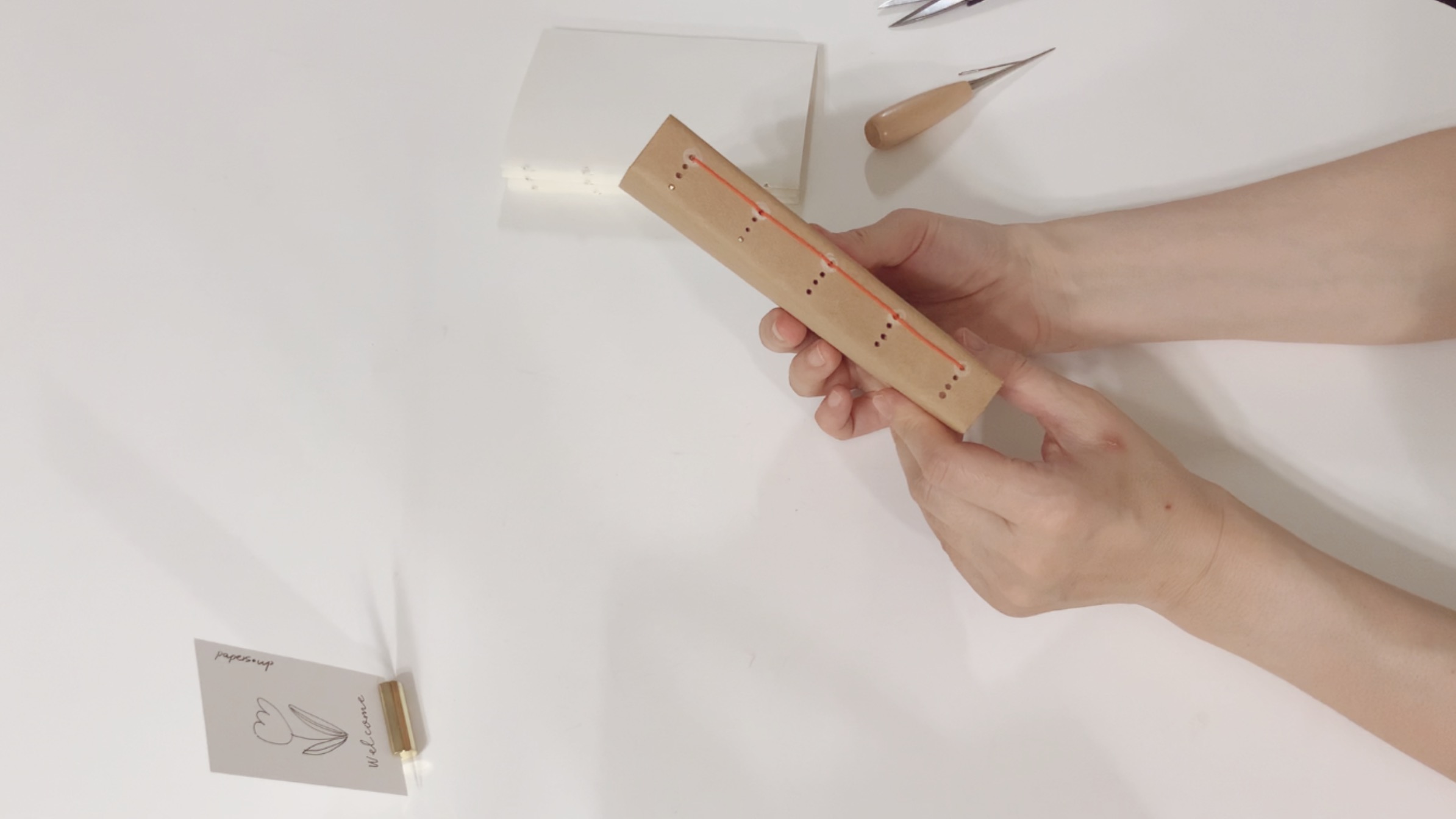 노트표지, 노트내지, 송곳, 바늘, 실(2종류~4종류), 가위, 마스킹테이프